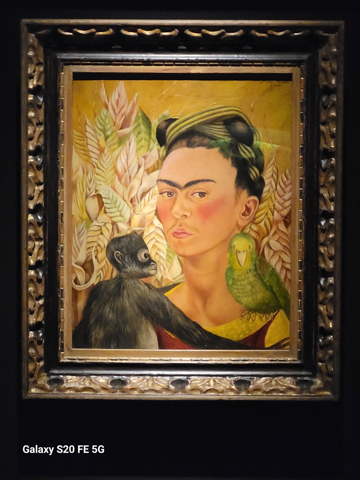 - Frida Kahlo — Self-Portrait with Monkey and Parrot (1942).