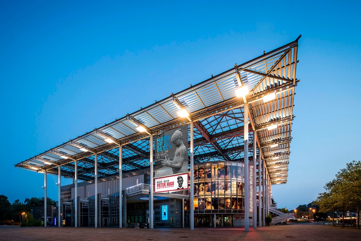 Kunstmuseum Wolfsburg opened May 1994 in a purpose-built Peter Schweger building funded by the Volkswagen Foundation. Famous for its 1,600 m² column-free hall — Europe's largest.